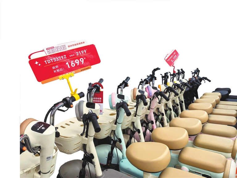 店长刘先生告诉记者,目前正是电动自行车销售旺季,郑州以旧换新活动4月29日开始后,政府补贴的拉动作用开始显现,这两天的销量比之前要高。