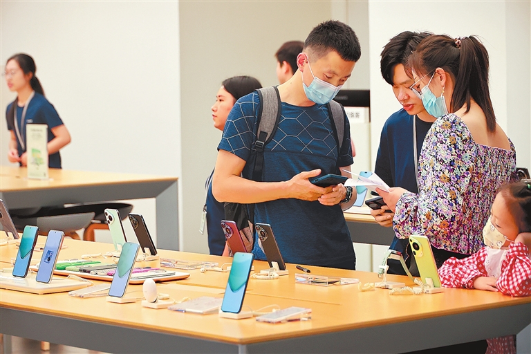 在这波数码电子产品消费热潮中,线下门店试图通过细分市场、精准定位,找到新机会。“‘五一’期间,商家对6000元以上的手机进行补贴,希望能够满足更多消费群体的需求,进一步刺激市场潜力。”郑州金水区花园路苏宁易购MAX店店长薛森说,不只是“五一”假期,今年以来店里3C数码产品销量持续走高。